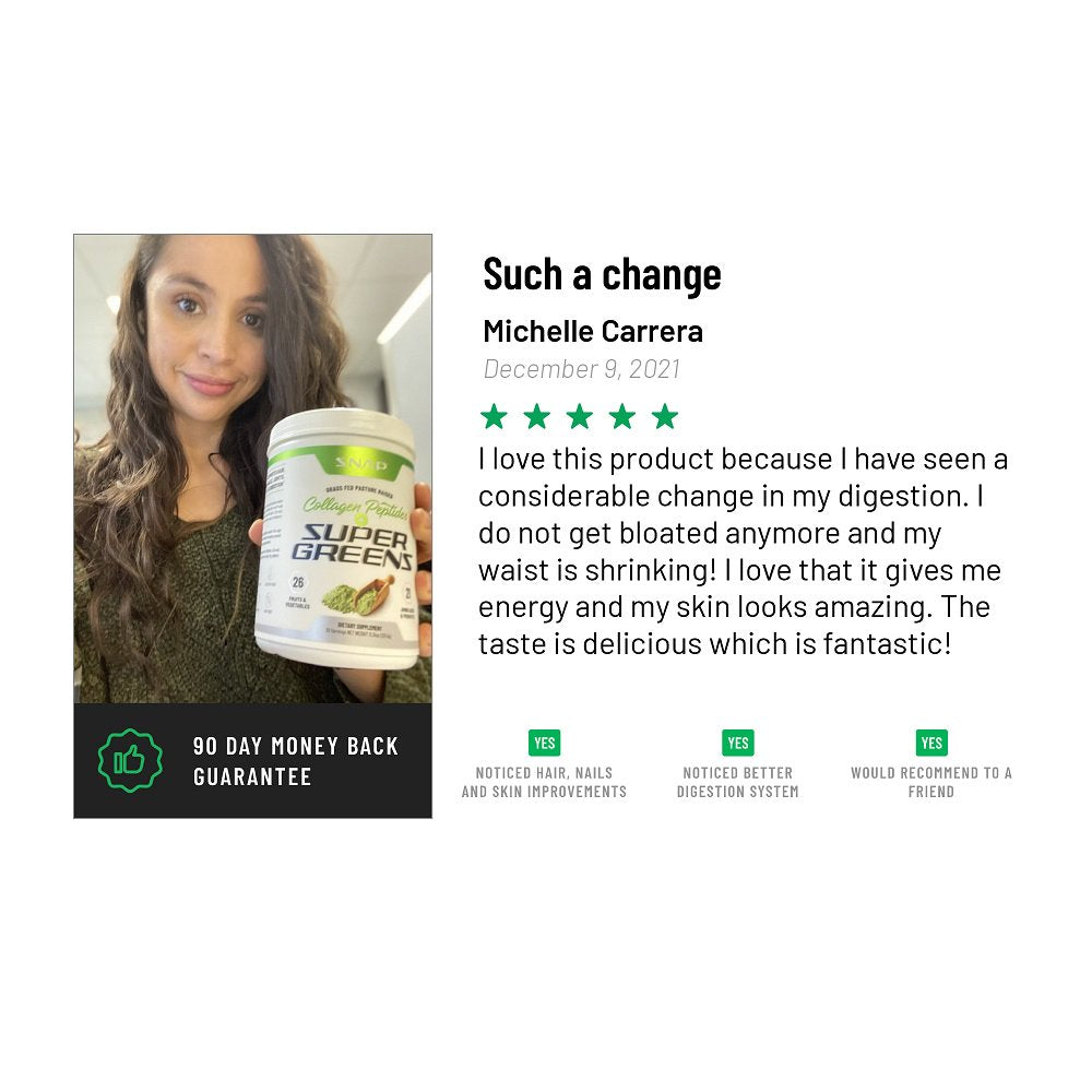• 90 DAY GUARANTEE: We believe and stand by our Super Green Collagen Peptide product. As with most supplements and collagen greens powder, however, results aren’t instant. We encourage you to take the daily dosage for a full 90 days, and if it doesn’t work as described simply send it back for a full refund.
