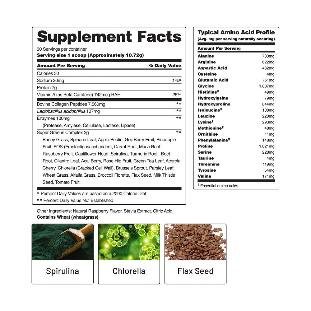• BOOST IMMUNE SYSTEM: Our powdered greens supplements is combined with 26 superfood greens that work together to support your immune system. This collagen and greens powder will help keep you performing at your best.