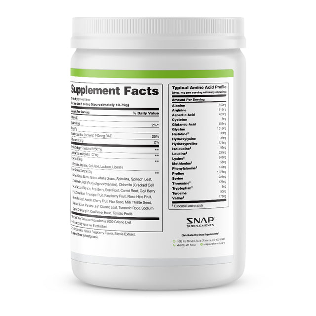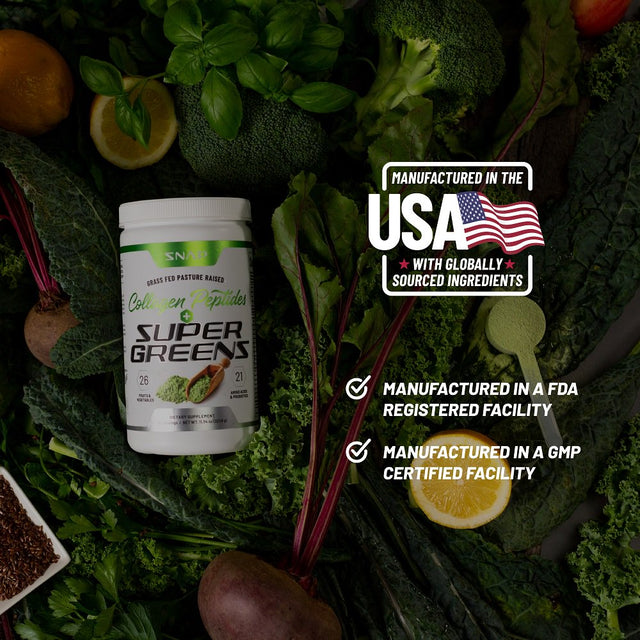 Collagen Peptides Super Greens Powder Snap Supplements - Grass Fed, Non-Gmo, Pasture Raised Superfood - 30 Servings