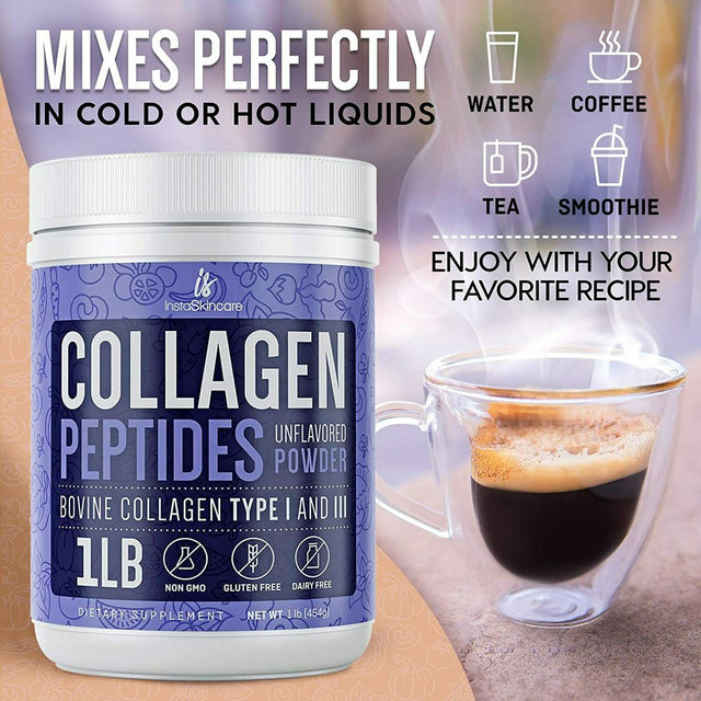 Collagen Powder Premium Peptides Hydrolyzed Anti-Aging Unflavored 1LB (2 Pack) package may vary