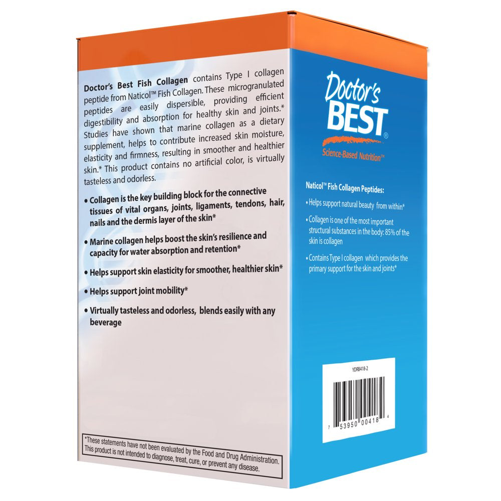 Doctor’s Best Fish Collagen contains Type 1 collagen peptide from Naticol Fish Collagen. These microgranulated peptides are easily dispersible, providing efficient digestibility and absorption for healthy skin and joints. Studies have shown that marine collagen as a dietary supplement, helps to contribute increased skin moisture, elasticity and firmness, resulting in smoother and healthier skin. This product contains no artificial color, is virtually tasteless and odorless.* At Doctor’s Best, we lead with science. Our products are backed by research and crafted using pure ingredients carefully sourced from around the globe. Since 1990, we have dedicated ourselves to providing highly effective nutritional supplements that enable you to live a healthier lifestyle. We want nothing more than to see you and your family thrive!