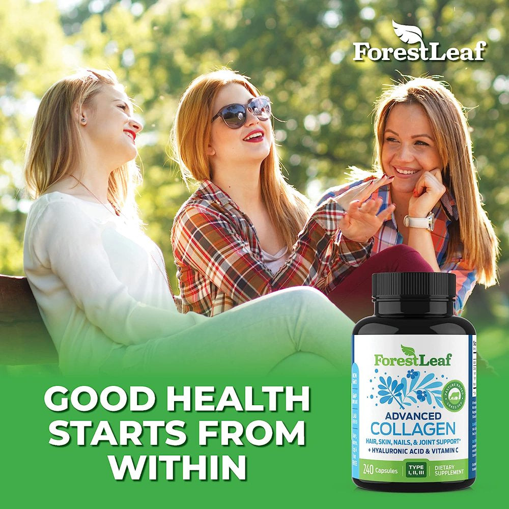 Say goodbye to fine lines and wrinkles with these Forest Leaf Collagen Pills with Hyaluronic Acid and Vitamin C!