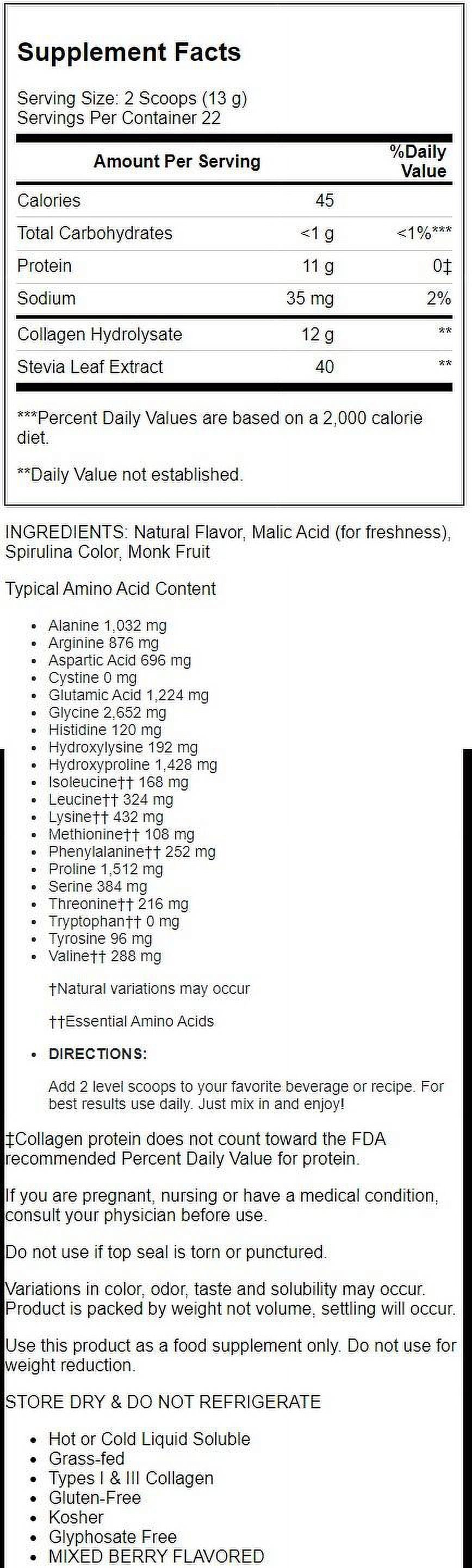 Great Lakes Wellness Quick Dissolve Collagen Peptides - Mixed Berry 10 Oz Pwdr - 10 Oz is backordered and will ship as soon as it is back in stock.