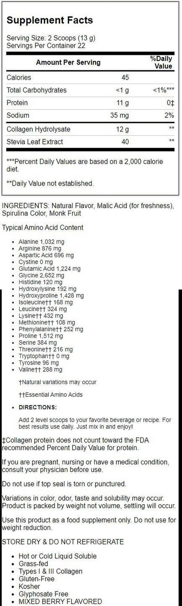 - 12 g collagen plus a balanced amino acid profile in each serving