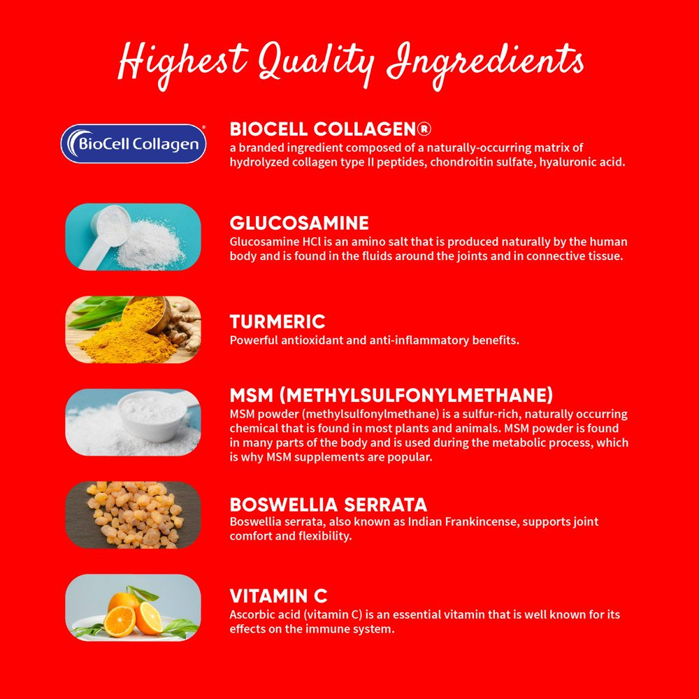 - NOT JUST COLLAGEN β By combining BioCell Collagen with Glucosamine, MSM, and herbal extract, Healthy Joints covers all areas of joint health. Healthy Joints are a necessity to maintain a high quality of life. Healthy Joints is the premium joint supplement to ensure you have healthy, flexible, and mobile joints that minimize discomfort in your daily life