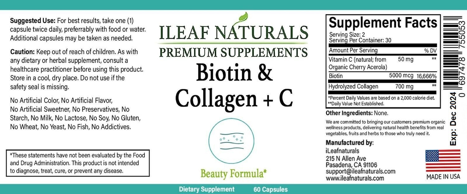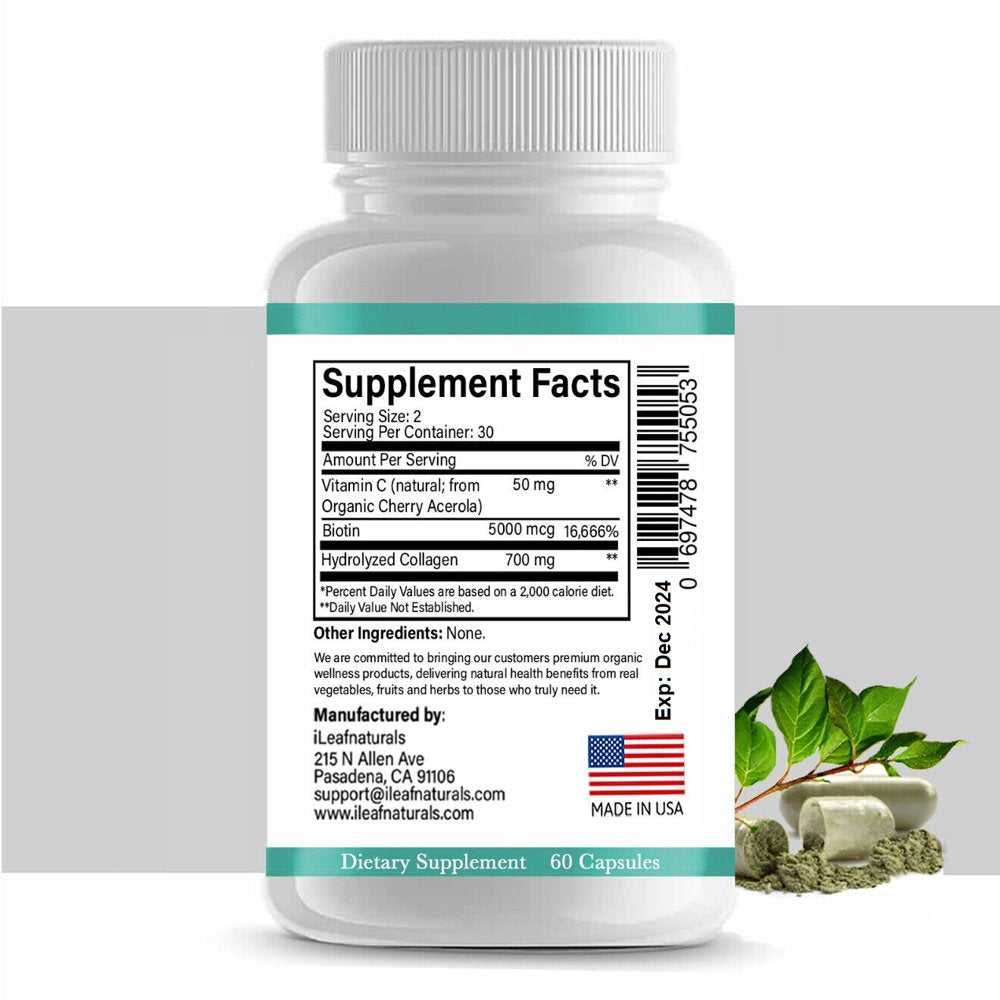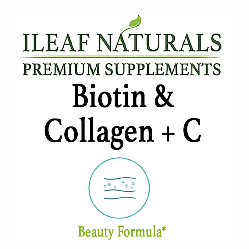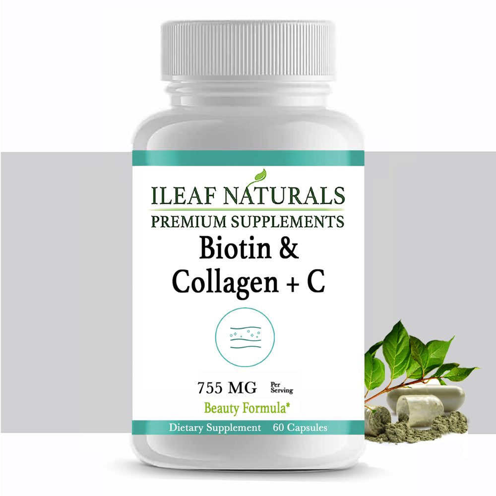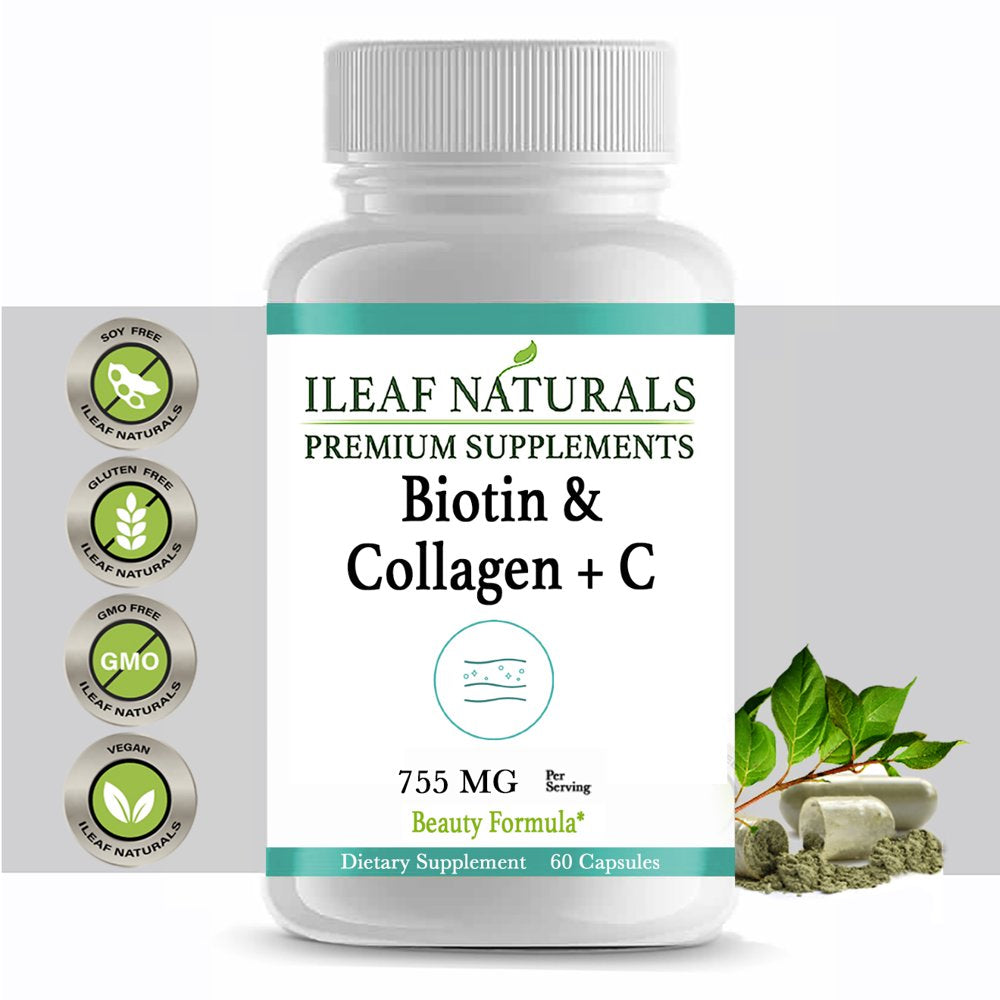 Ileaf NATURALS Biotin & Collagen + Vitamin C 755 MG - 60 Veggie Capsules
