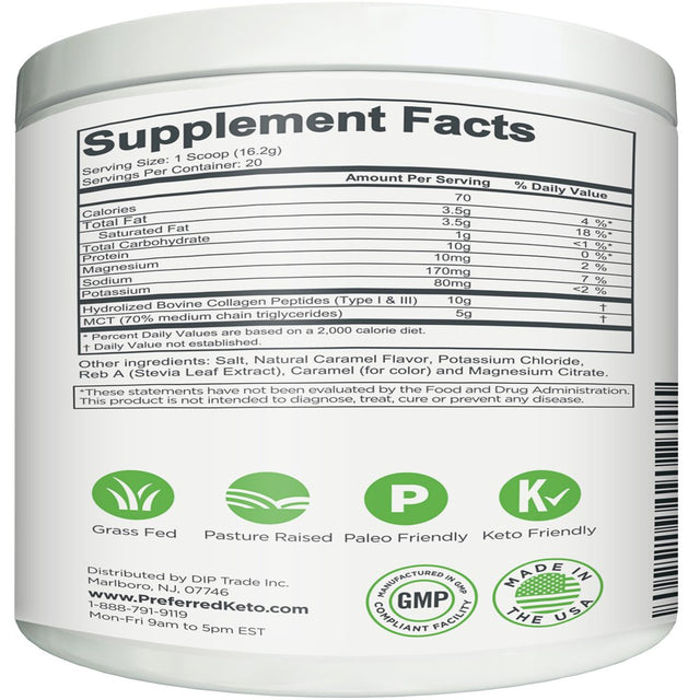 Keto Collagen Protein Powder with MCT Oil Powder - Pure Grass Fed Pasture Raised Hydrolyzed Collagen Peptides Perfect for Low Carb Diet and with Keto Snacks KEYTO Salted Caramel Flavor