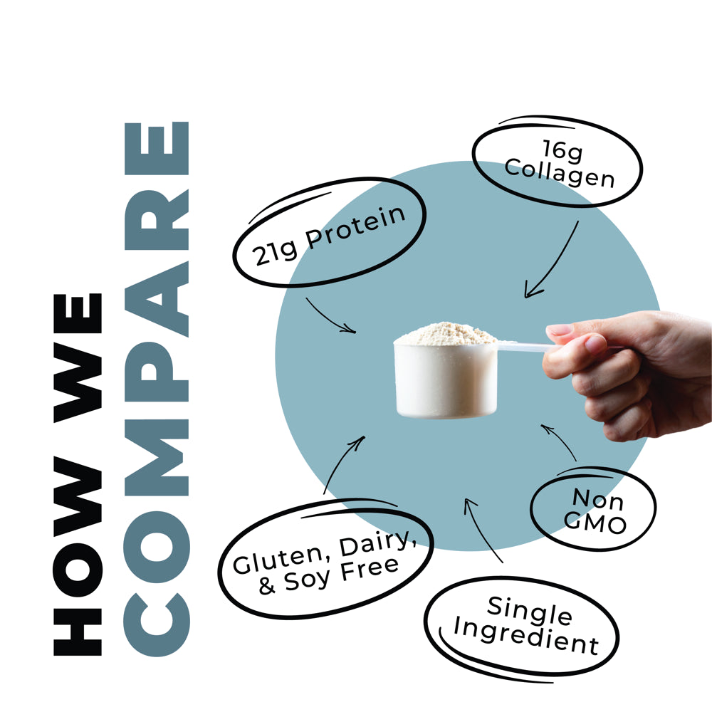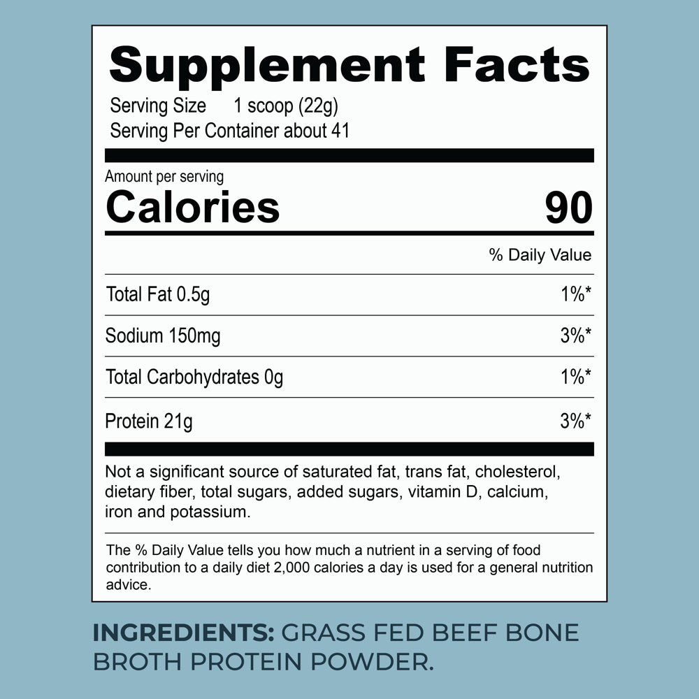 Indulge in our Superior Protein Powder that goes beyond regular protein supplements. Packed with collagen, gelatin, glucosamine, chondroitin, and a generous 17g of protein per serving, our Bone Broth Protein Powder supports your body with vital nutrients for optimal performance and overall well-being.High-Quality, Thoughtful Process: