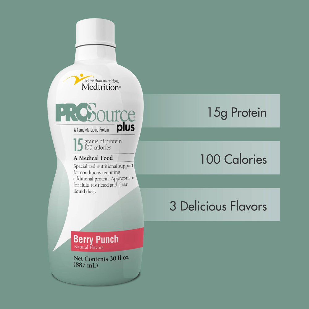 Liquid Collagen Peptides Type I, III 15 Grams Protein per Oz. |Prosource plus Berry Punch Bottle Medtrition|