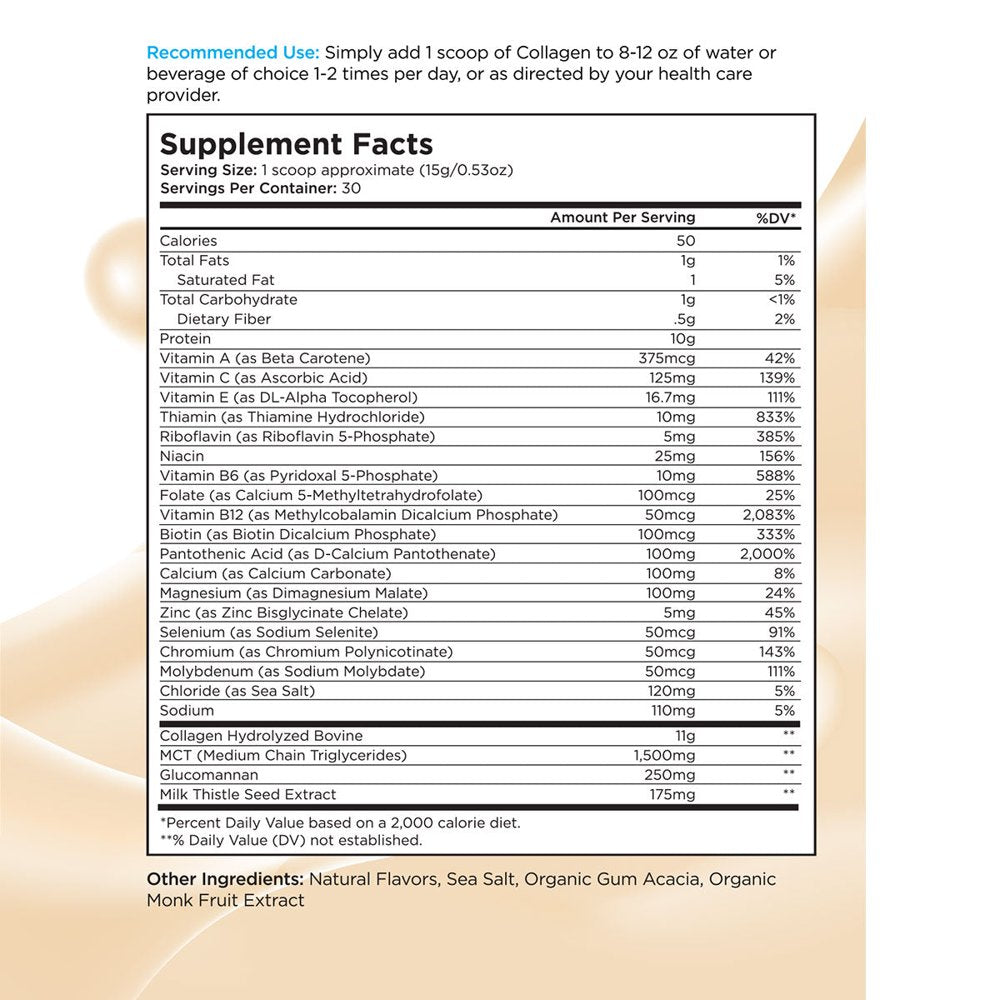 Livingood Daily Collagen + Multi is the perfect choice to complement any meal that may be lacking in calories and nutrients, or as a quick, convenient, nutrient-dense snack. It is naturally sweetened with monk fruit so it doesn't spike blood sugar levels, features a weight-loss supporter: glucomannan, and a liver detoxifier: milk thistle.