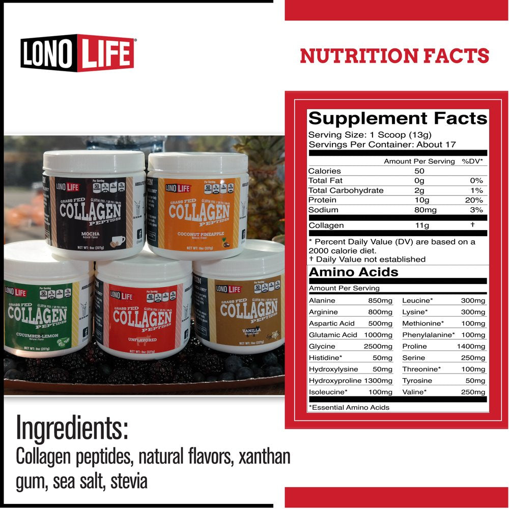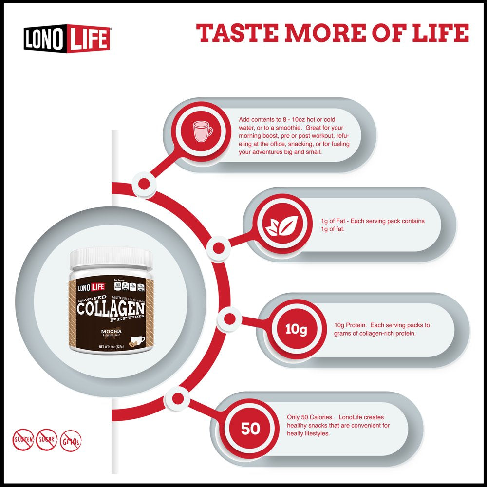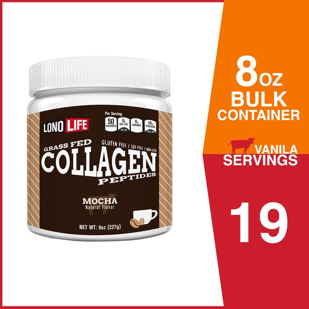 Lonolife Mocha Collagen Peptides with 10G Protein, Paleo and Keto Friendly, 8-Ounce Bulk Container
