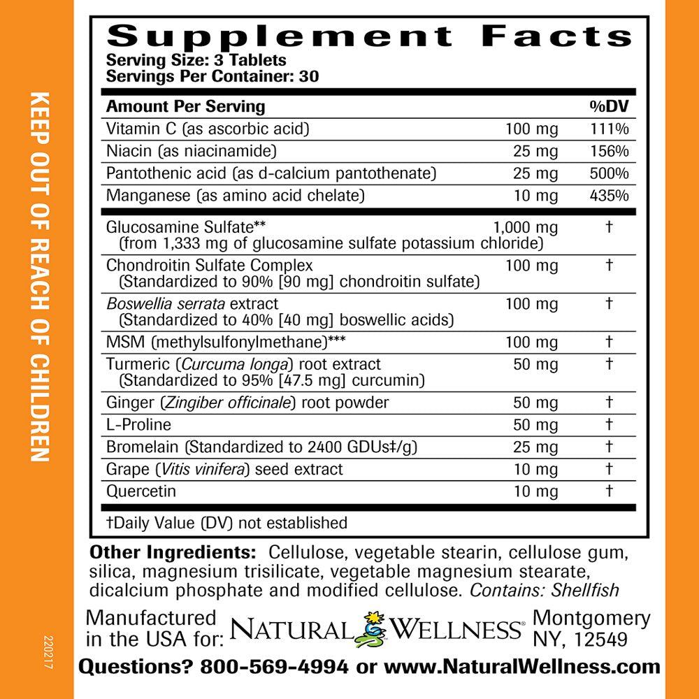 Natural Wellness Joint Support - Glucosamine, Chondroitin, MSM W/ Turmeric - Promotes Healthy Joints, Supports Comfortable Movement & Collagen Formation - 90 Tablets: 30-Day Supply is backordered and will ship as soon as it is back in stock.