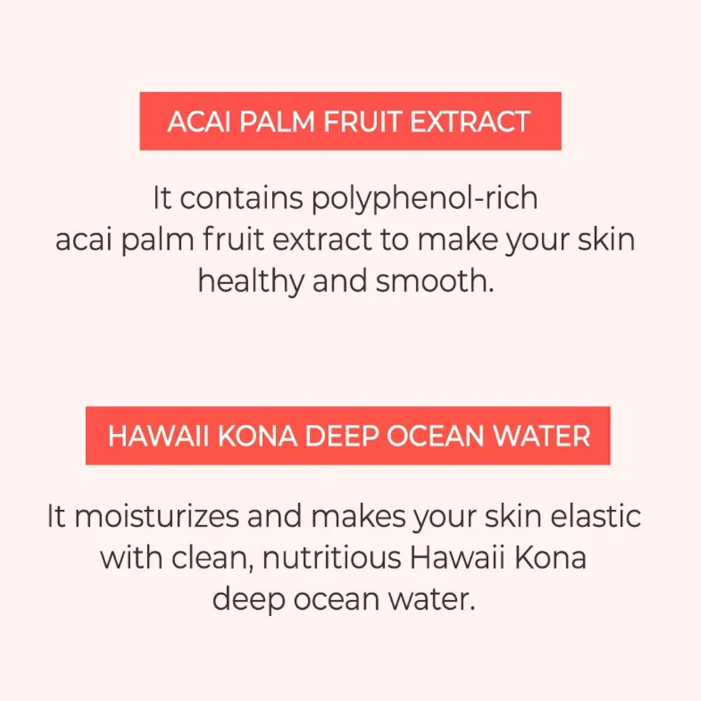- Contains 10.000 ppm of polyphenol-rich Acai Palm Fruit Extract to make your skin healthy and smooth