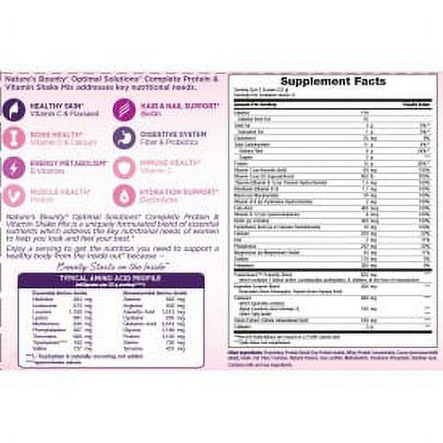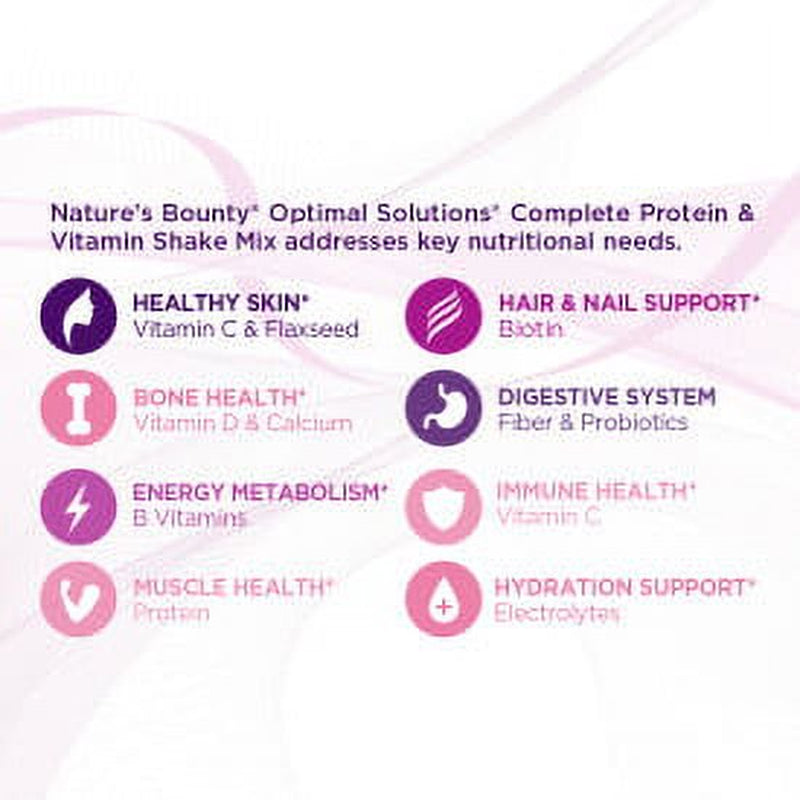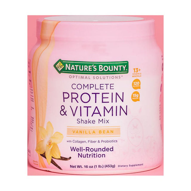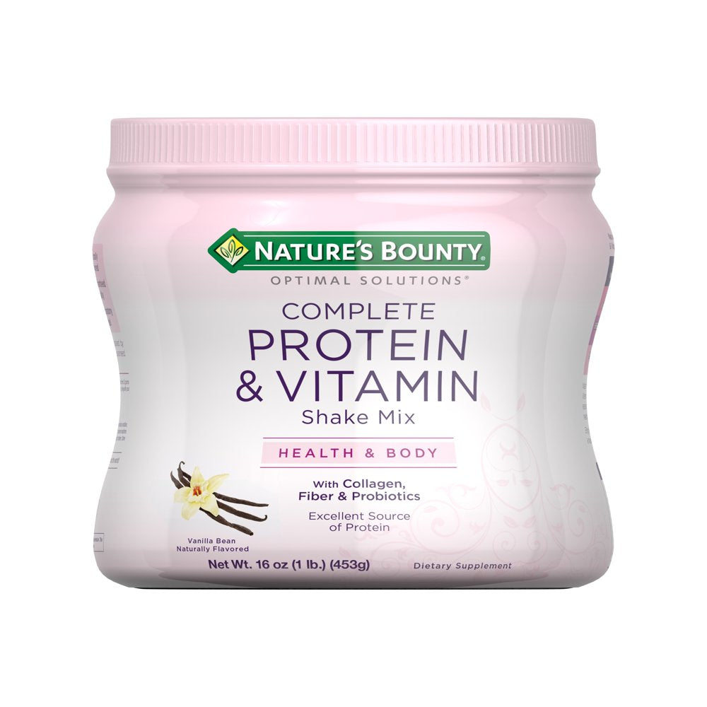 Nature’s Bounty Complete Protein & Vitamin Shake Mix is an exciting way to get the nutrients you need most.* Our Chocolate and Vanilla flavors are decadent Optimal Solutions for health. Each serving provides important Protein, Fiber, B vitamins, antioxidants, electrolytes, probiotics and more! Packaging May Vary.