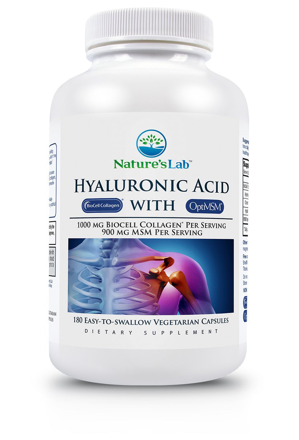 Nature's Lab Hyaluronic Acid with BioCell Collagen® and OptiMSM® is a unique supplement featuring 1,000 mg BioCell Collagen ® and 900 mg OptiMSM ®. This non-GMO, gluten free formula contains:
