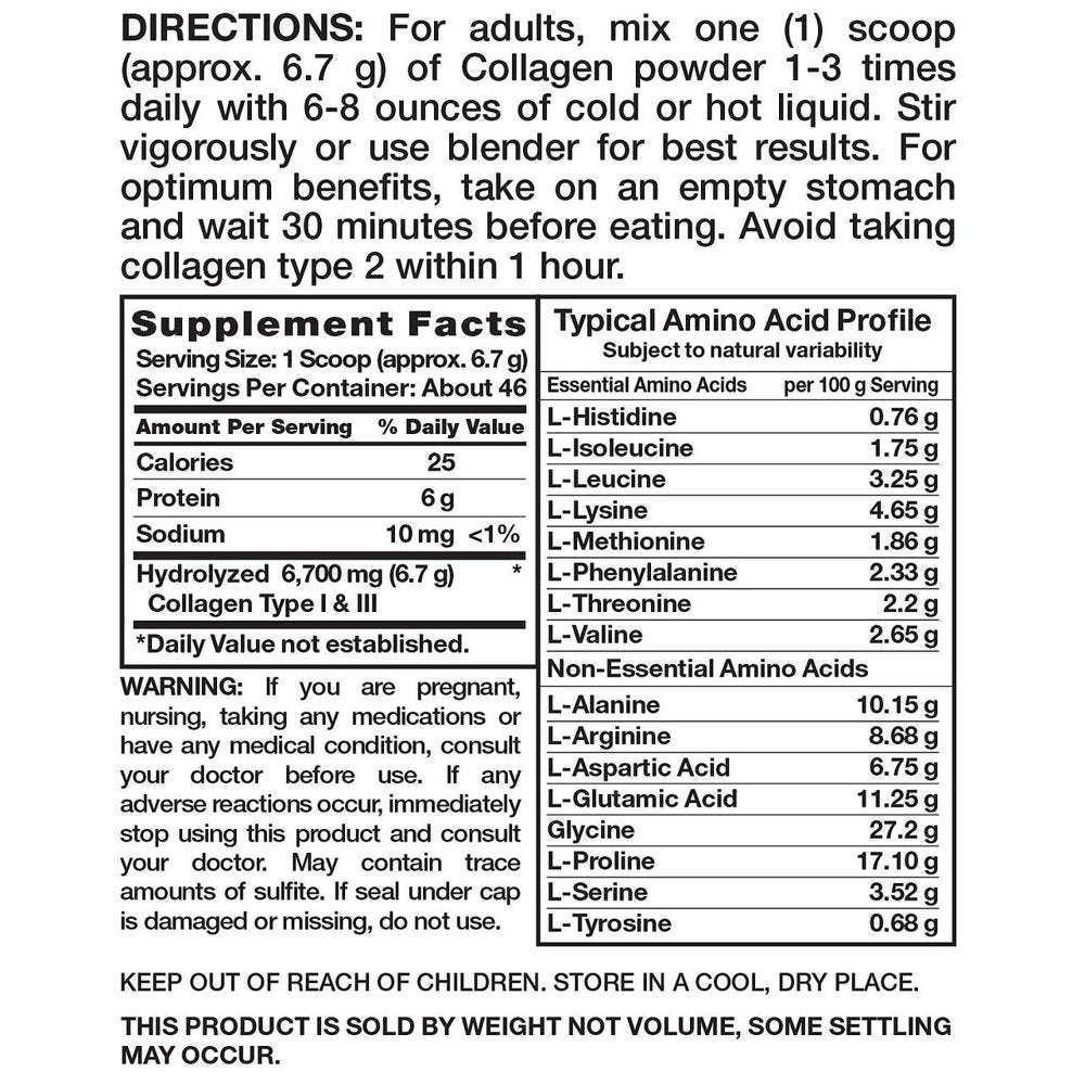 20g of collagen per daily dose 18g of protein per daily dose Unflavored and odorless Non-GMO and gluten-free Features both collagen type 1 and 3
