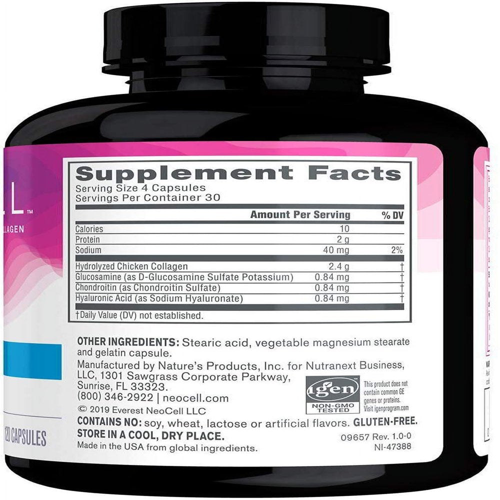 NeoCell - Collagen Type 2 Joint Complex - 120 Capsules (Packaging May Vary) Joint comfort and mobility: Provides Collagen Type 2 and essential nutrients to support healthy joint function, joint comfort and mobility | Joint lubrication: Includes glucosamine, chondroitin, and hyaluronic acid, which support joint lubrication and may help with joint swelling | Synovial fluid: Provides synovial fluid for joint cushioning | Provides collagen type 2: Contains 2,400 mg BioActive NeoCell Collagen Type 2 per serving Collagen2 provides Collagen Type 2 and essential nutrients for joint support. Collagen Type 2 is the key structural protein in cartilage tissue and deteriorates as we age. NeoCell Collagen2 includes glucosamine, chondroitin, and hyaluronic acid for joint lubrication.