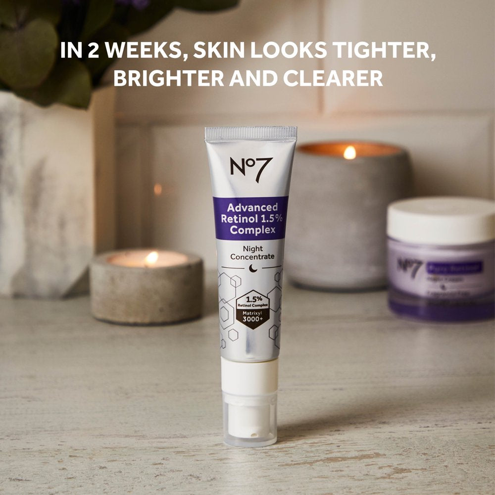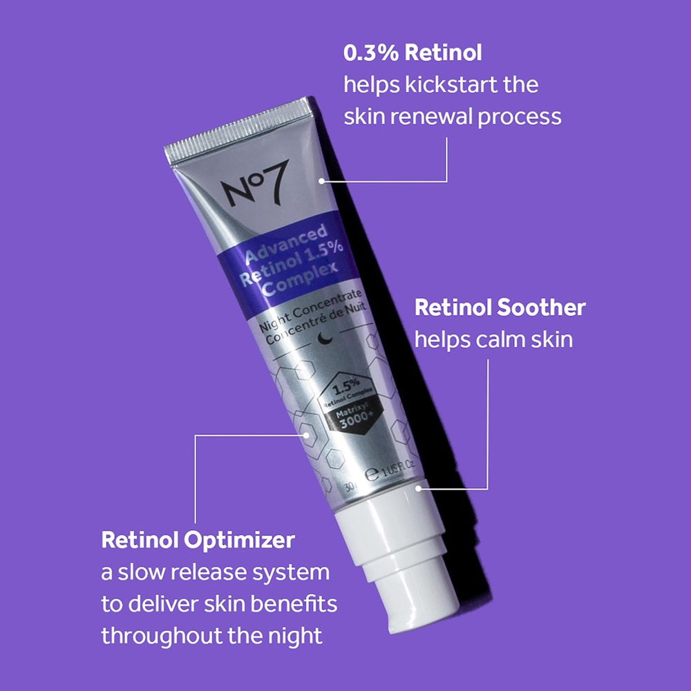 - Leverages NO7 unique 1.5% retinol complex and matrixyl 3000+ & for visibly transformed skin