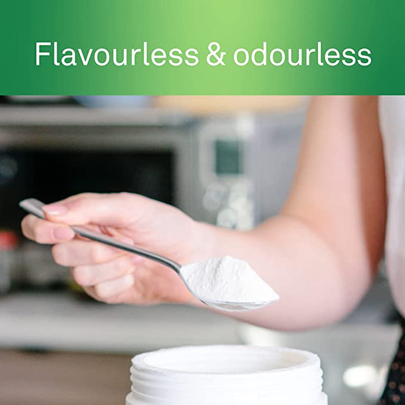 - FLAVOURLESS & MIXES EASILY – most commonly enjoyed with smoothies, coffee or tea, soups, recipes, and more. Heat stable and can be used in baked goods as well!