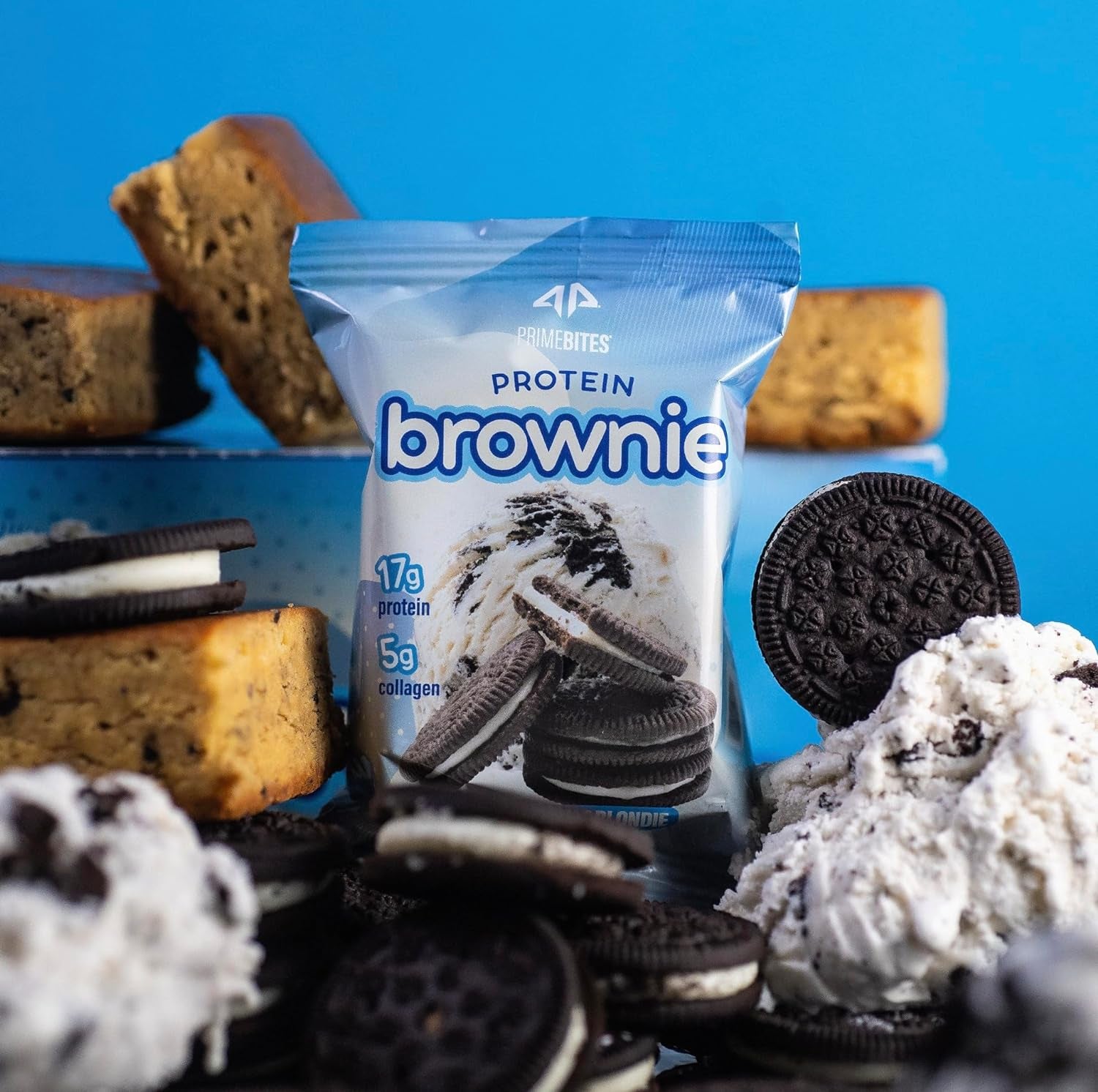- UNBELIEVABLE FLAVORS: Prime Bites Protein Brownies come in outstanding flavors including: Cookies & Cream Blondie, Chocolate Cookie Monster, Chocolate Fudge, Blueberry Cobbler, Birthday Cake Blondie and Chocolate Peanut Butter Chip.