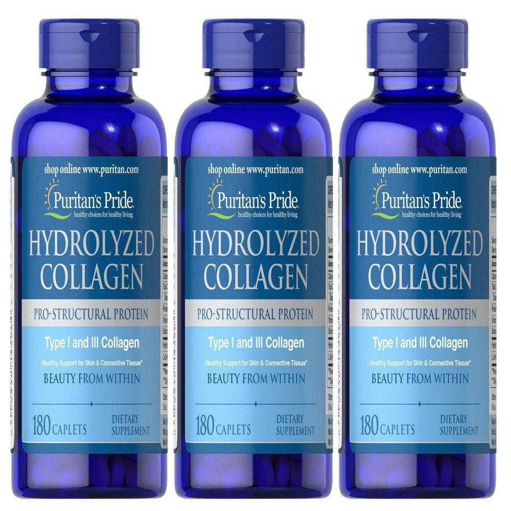 Puritan'S Pride Hydrolyzed Collagen 1000 Mg - 180 Caplets Protein Supplement (3-PACK)