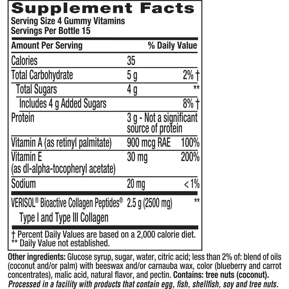 - Up to 2500mg of Collagen per serving (based on 4 gummy serving)