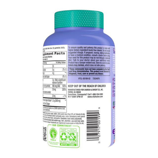 vitafusion™ Collagen Gummy Vitamins supply collagen peptides to the body in a delicious berry pomegranate flavored gummy! With up to 2500mg of collagen per serving and vitamins A & E, you’ll look forward to your daily dose. At vitafusion, we believe taste and nutrition can be fused together to deliver the best vitamin experience, ensuring it’s an easy and delicious part of your day. For over 12 years, we’ve been helping people to live happy and healthy lives with our gummy vitamins and supplements. Anything is possible when great nutrition is your foundation. Take a fruitful step toward a healthier, happier world with gummy vitamins from vitafusion, the gummy vitamin experts.