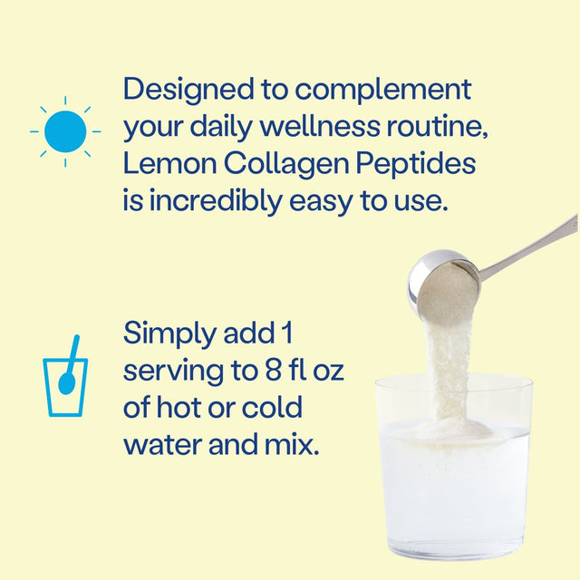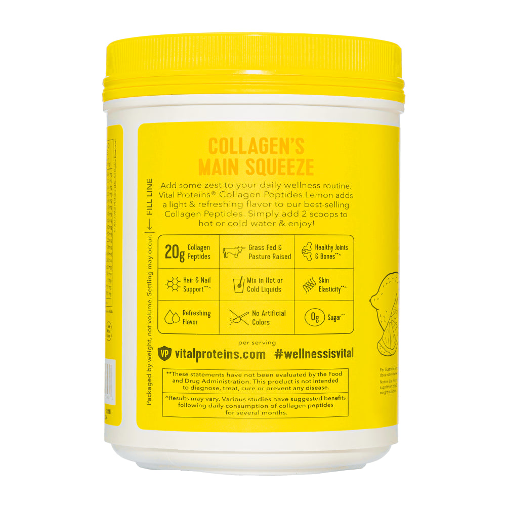 We squeezed a lot of benefits and flavor into our Vital Proteins® Lemon Collagen Peptides. You get the same grass-fed, pasture-raised collagen you know and love, but with an added boost of flavor to support hair, skin, nail, bone and joint health.**^ Made with a lemony boost of flavor and a touch of stevia, Lemon Collagen Peptides contains 0g of sugar.^^ Designed to add some zest to your daily wellness routine, Lemon Collagen Peptides is incredibly easy to use and adds a light and refreshing flavor to Vital Proteins®’ best-selling Collagen Peptides.