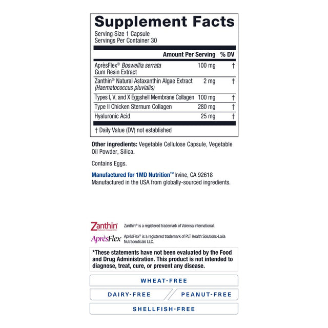 1MD Nutrition MoveMD - Joint Health Supplement - Doctor Formulated | with Collagen, Astaxanthin, and More | 30 Capsules MoveMD® delivers clinically studied ingredients in one comprehensive joint health solution. Stop everyday joint aches from slowing you down with powerful antioxidants, advanced collagens, and hyaluronic acid