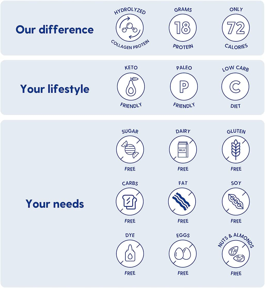 - Keto and Paleo Friendly: This lean source of liquid hydrolyzed protein contains 18g of protein and 18,000mg of collagen per serving, only 72 calories. Formulated with clean ingredients and only what your body needs, no proprietary blends, you can ensure that it has no carbs, fats, and sugars, GMO, gluten, as well as artificial dyes and preservatives.