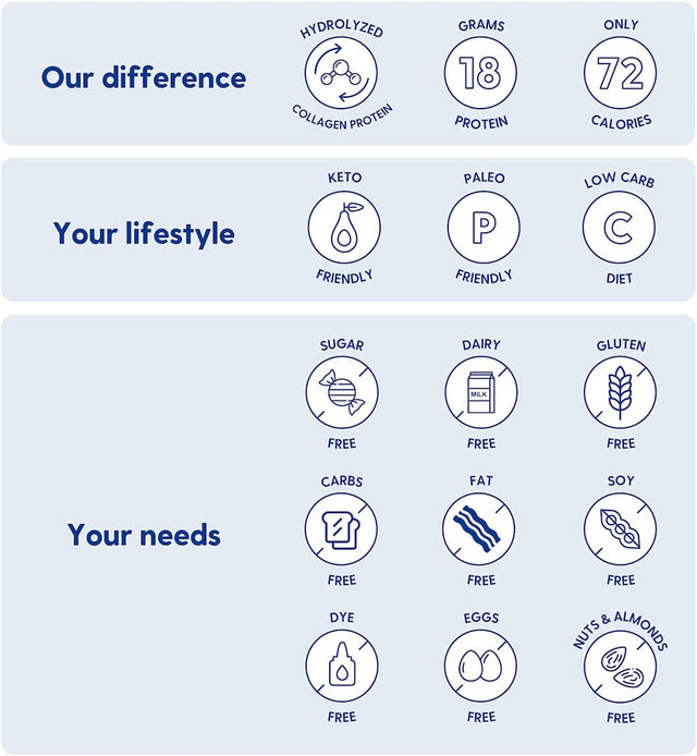 KETO & PALEO FRIENDLY, DAIRY, GLUTEN & GMO FREE, CONTAINS TYPE I & III COLLAGEN