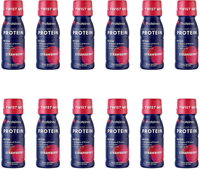2Go Liquid Hydrolyzed Protein Supports Bones, Muscles and Joint Recovery - 12-Pack No Carbs Predigested Hydrolysate Protein Supplement - Sugar Free Liquid Collagen Drink (Strawberry)