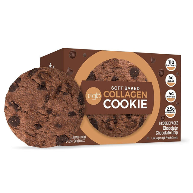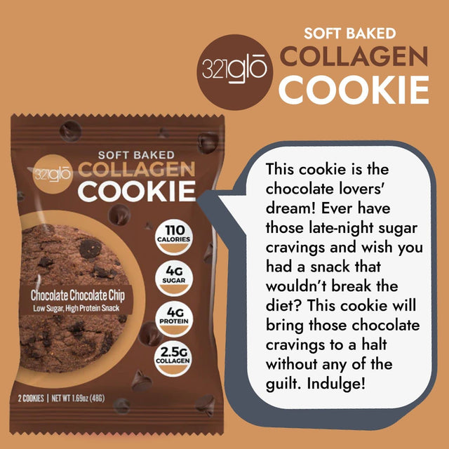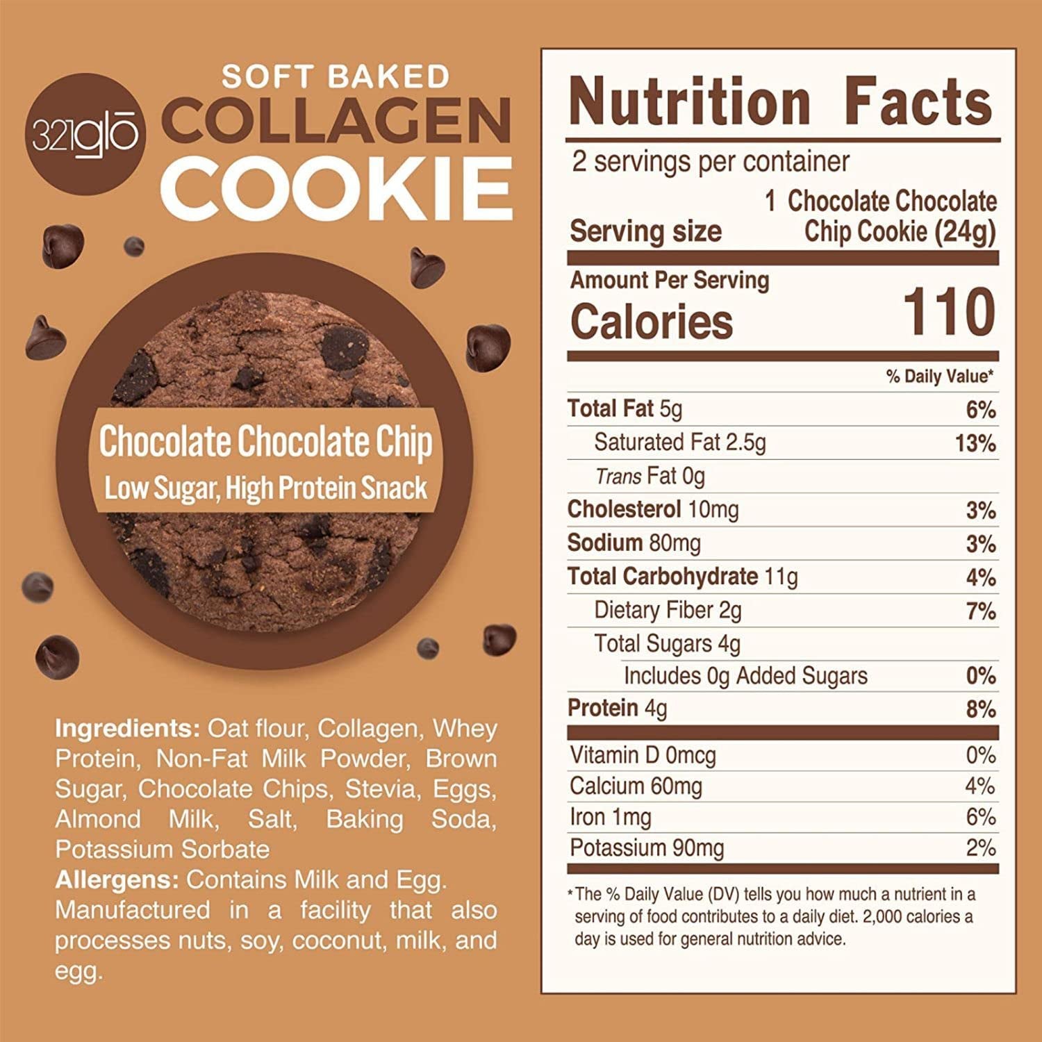 321Glo Collagen Protein Cookies, Soft-Baked Cookies, Low Carb and Keto Friendly Treats for Women, Men, and Kids, 6-PACK (Chocolate Chocolate Chip)