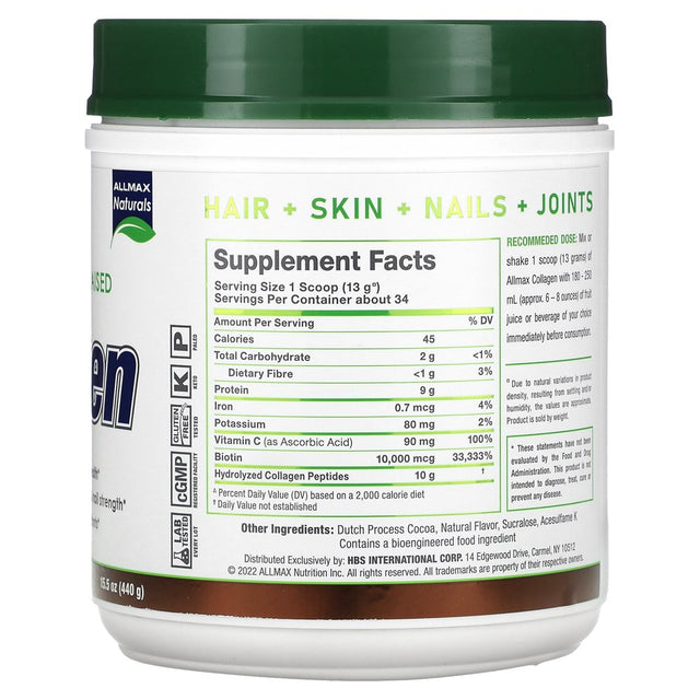 ALLMAX Collagen with Biotin & Vitamin C, Chocolate, 15.5 Oz (440 G)