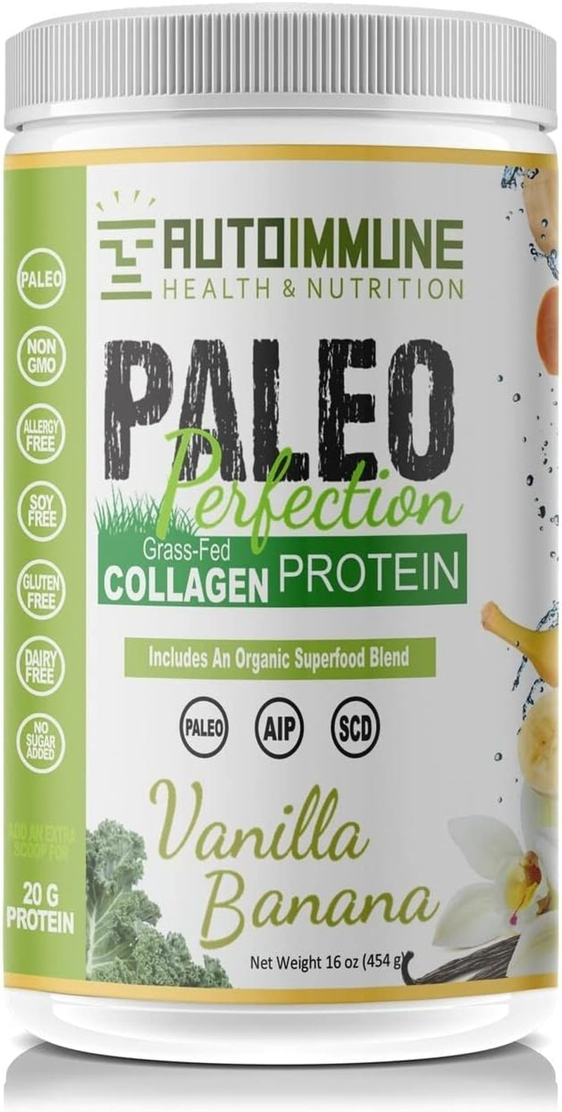 Autoimmune Health - Paleo AIP Protein Powder | Grass-Fed Beef Collagen | Vanilla Banana Flavor | 1 Pound 30 Servings (W/Stevia)