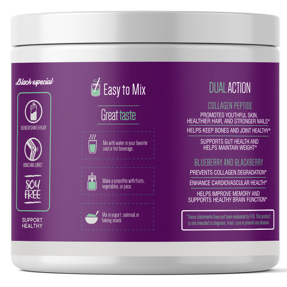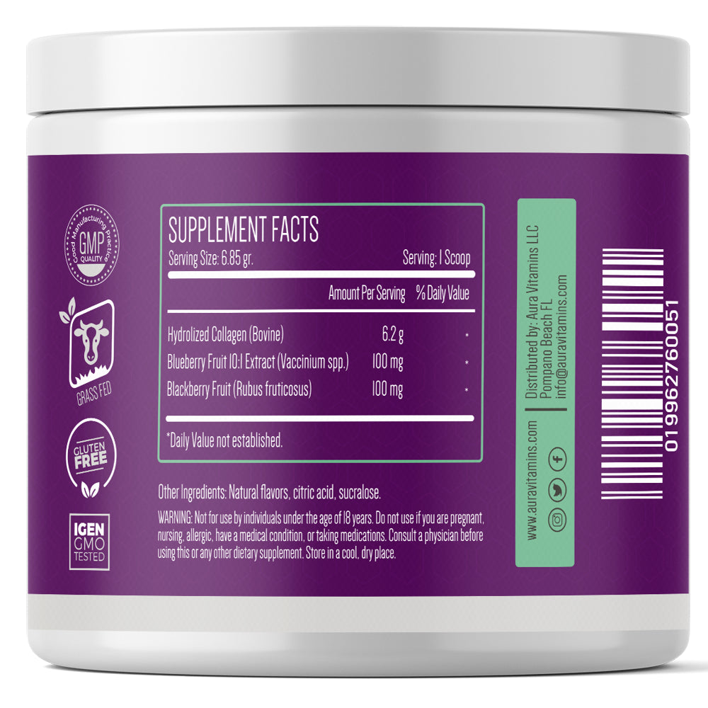 Berry Collagen Blast Powder Hydrolyzed (2) |Premium Blend Grass-Fed - Soy Free | Dual Action Collagen Peptides | Support Bones and Joints | Blueberry & Blackberry | IGEN GMO - 204 Grams is backordered and will ship as soon as it is back in stock.