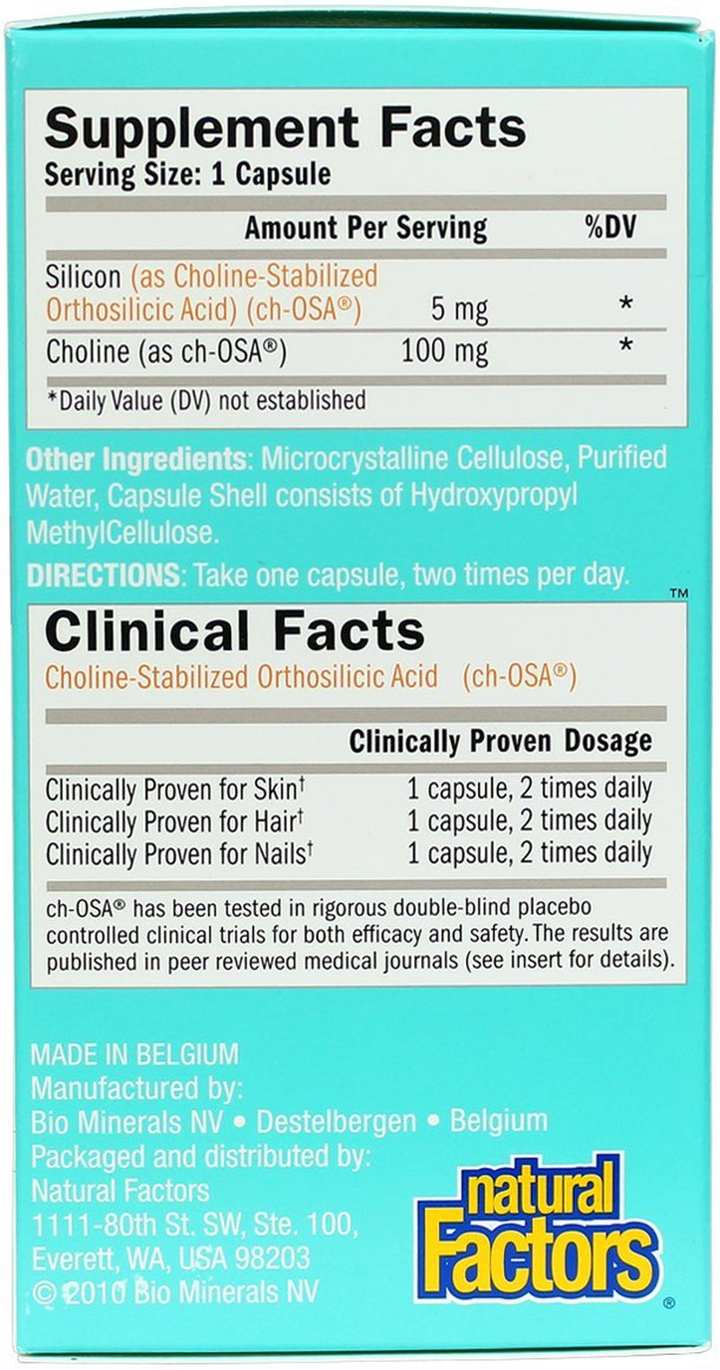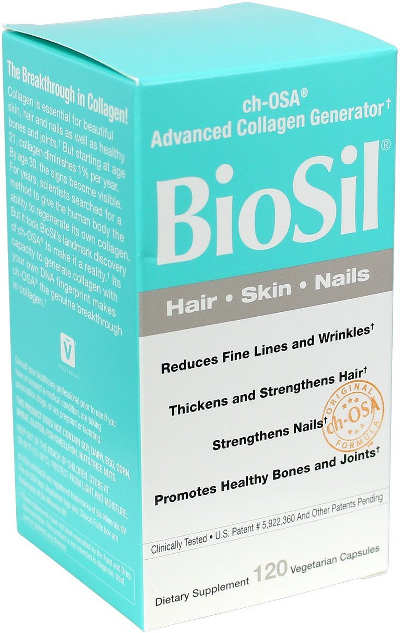 Natural Factors BioSil ch-OSA Advanced Collagen Generator is ideal for hair, skin, and nails. BioSil ch-OSA Advanced Collagen Generator reduced fine lines and wrinkles. BioSil ch-OSA Advanced Collagen Generator thickens and strengthens hair. BioSil ch-OSA Advanced Collagen Generator also strengthens nails. BioSil ch-OSA Advanced Collagen Generator promotes healthy bones and joints. Nourish your body's 3 "beauty proteins" - naturally with BioSil ch-OSA Advanced Collagen Generator!