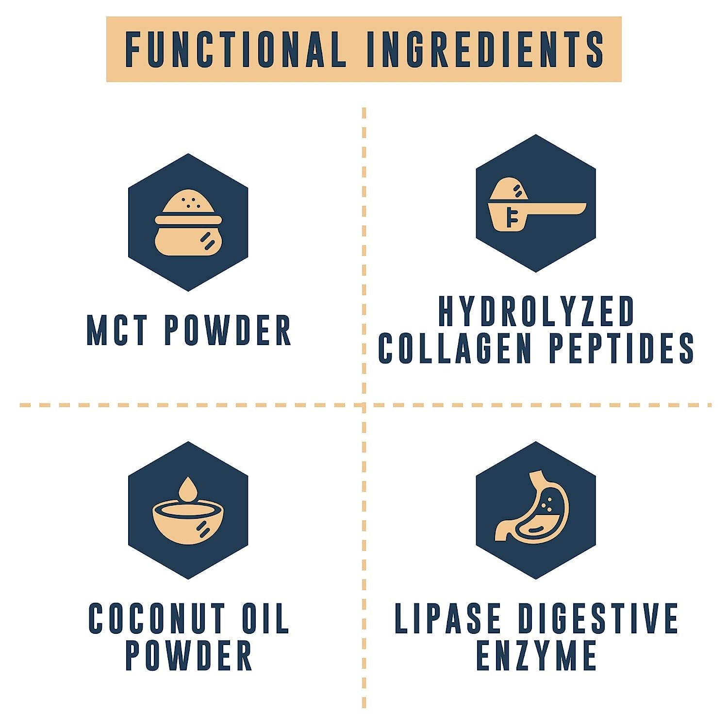 - FUNCTIONAL INGREDIENTS - Our low carb shake not only tastes great it contains MCT Powder from real coconuts, Type I & III Collagen Peptide Powder that is made here in the US, real cream cheese powder, coconut oil powder and lipase a digestive enzyme that aids in breaking down fat.