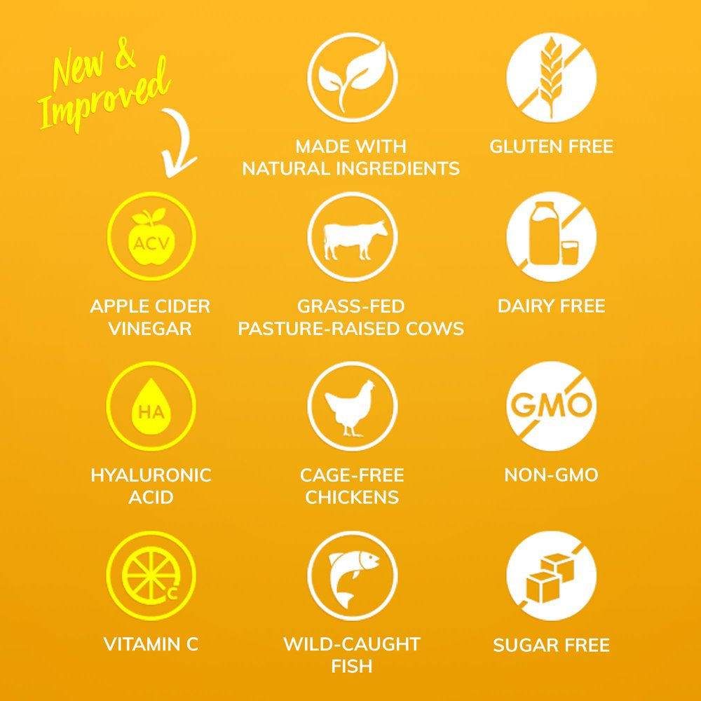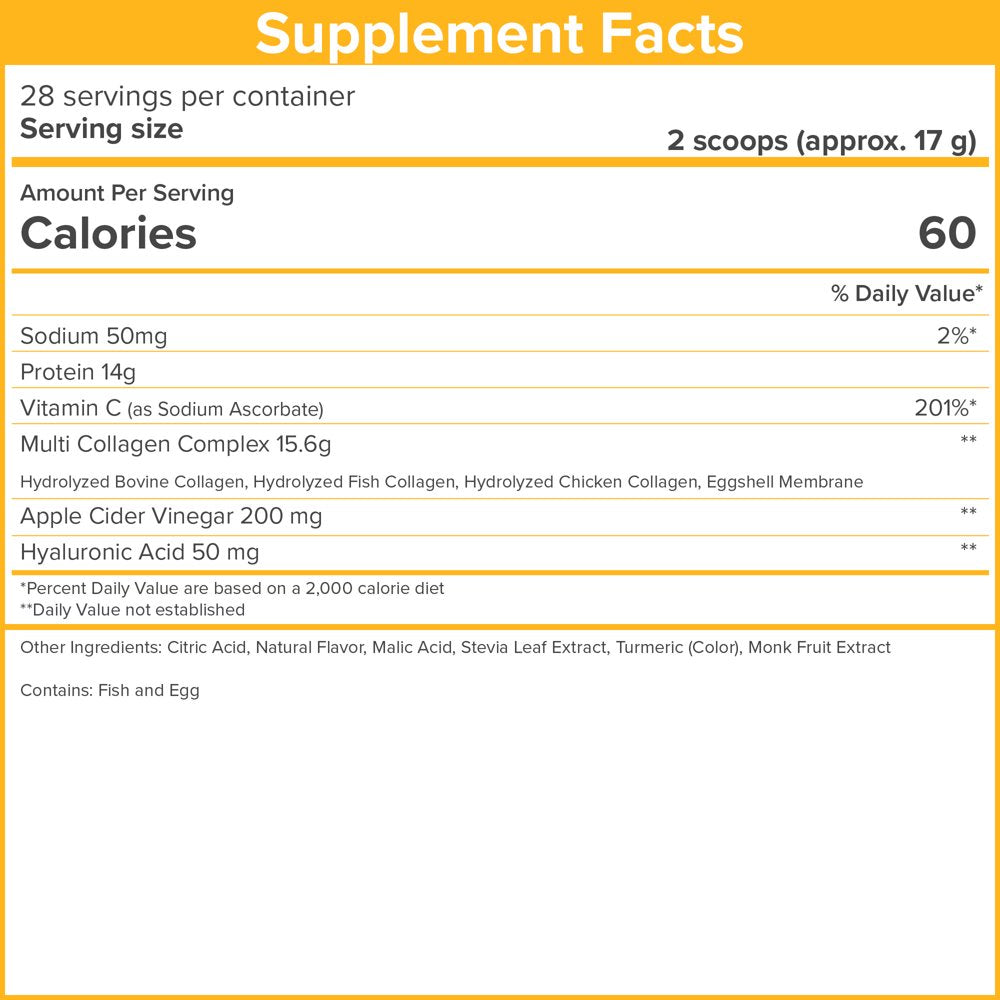 - HEALTHY SKIN, HEALTHY WEIGHT. Collagen and hyaluronic acid has shown an increase in skin elasticity and hydration, and supports cell regeneration, which supports youthful-looking skin. Apple cider vinegar supports a healthy metabolism and can aid in fat burn to help promote a healthy weight.