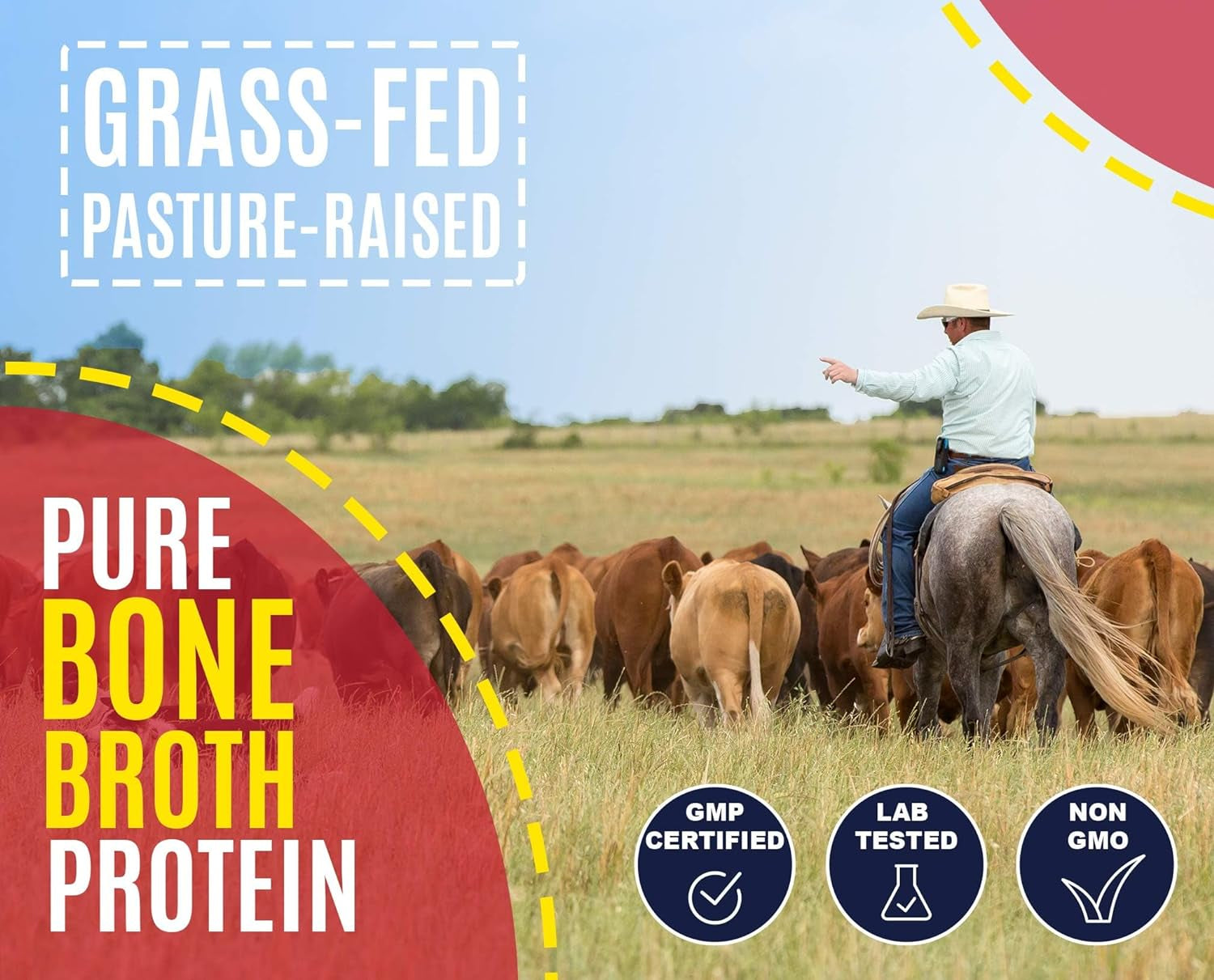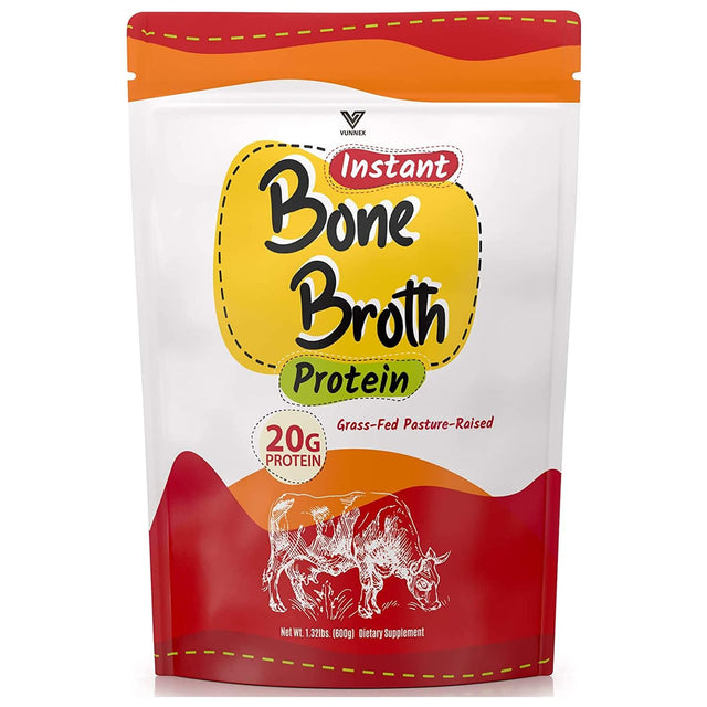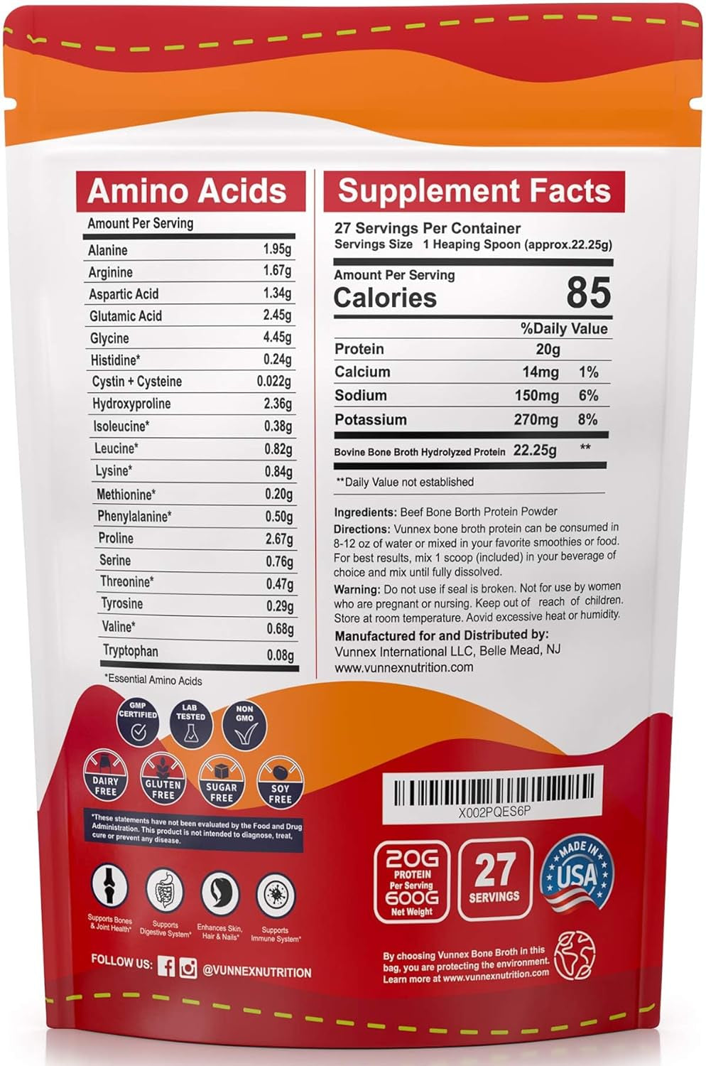 VUNNEX 1.32Lb Bone Broth Protein Powder, 20G Protein, Grass-Fed Beef & Non-Gmo, Gluten Free, Keto Friendly, Hydrolyzed Collagen Peptides, Perfect for Soup