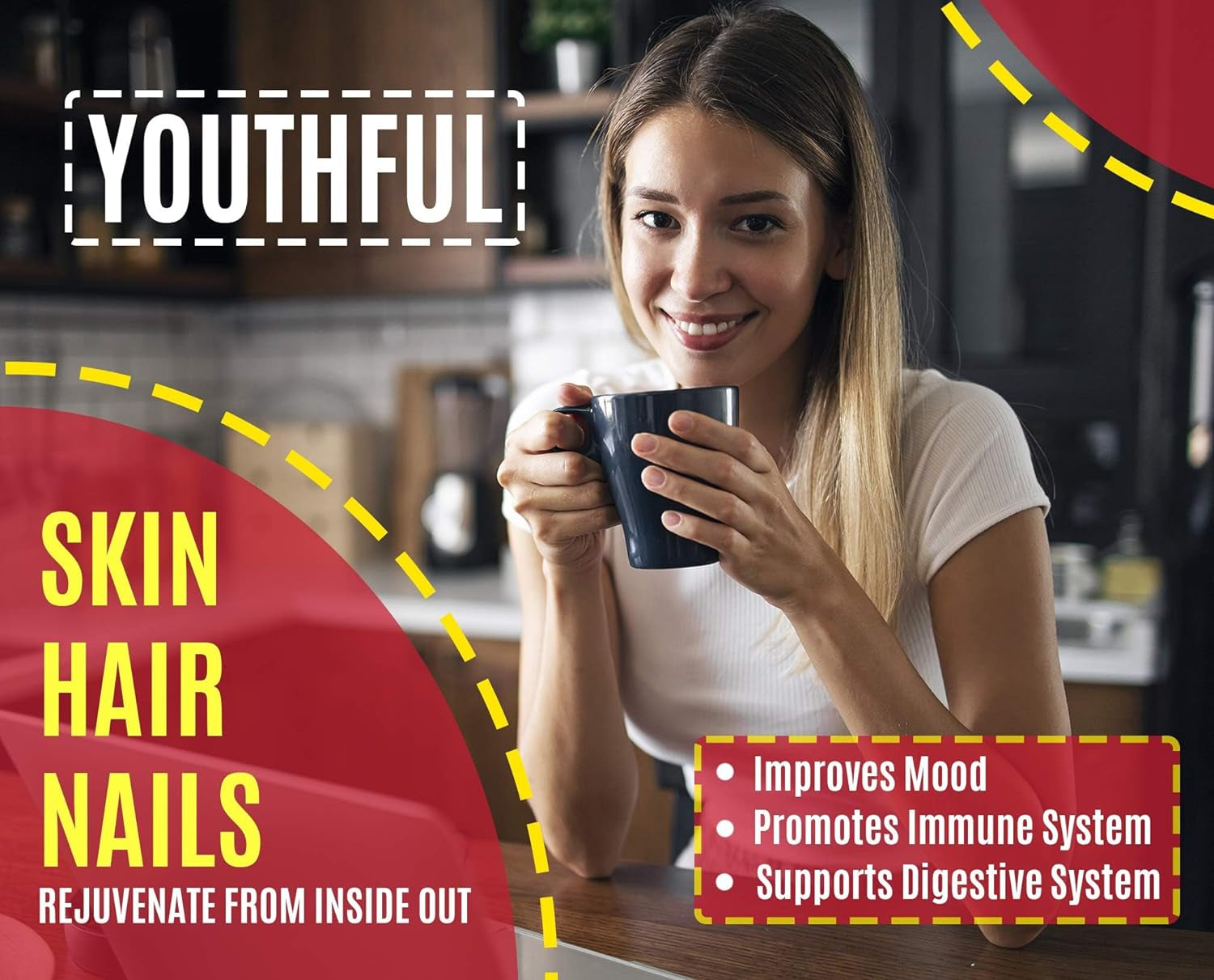 • YOUTHFUL HAIR, SKIN, AND NAIL: The 19 Naturally-Occuring Amino Acids plus Hyaluronic Acid, Chondroitin and Glucosamine contained in this product can not only improve the health of your skin, hair, bone and joints, but also promote mood, better sleep and health digestive system. Take 1 scoop of Vunnex Bone Broth Protein everyday to promote youthful-looking skin, non-drowsy, healthier hair, and strong nails.