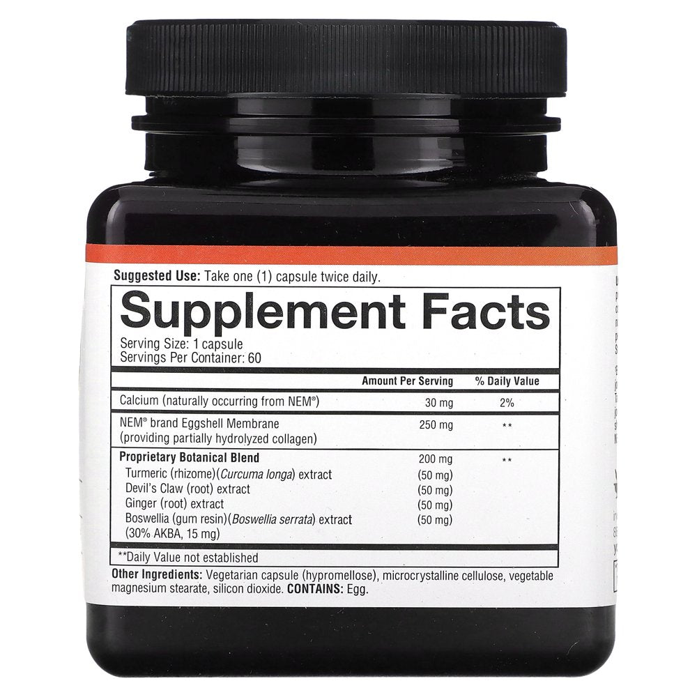 Youtheory® Joint Collagen features NEM® brand eggshell membrane. Eggshell membrane is the only vegetarian source of collagen and contains multiple nutrients that are crucial for joint health. Studies confirm that NEM® can help improve joint comfort, promote joint flexibility, and reduce joint stiffness. This powerful formula also supplies a targeted botanical blend, including a high potency Boswellia extract that works quickly.