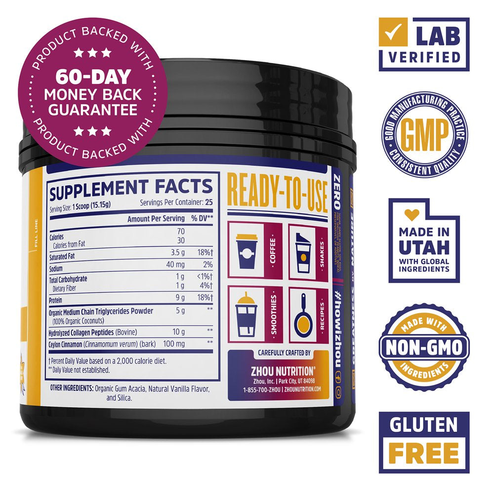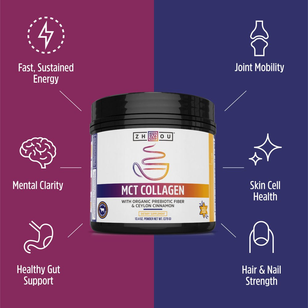 Zhou MCT Collagen | with Organic Prebiotic Fiber & Ceylon Cinnamon | 25 Servings, 13.4 Oz