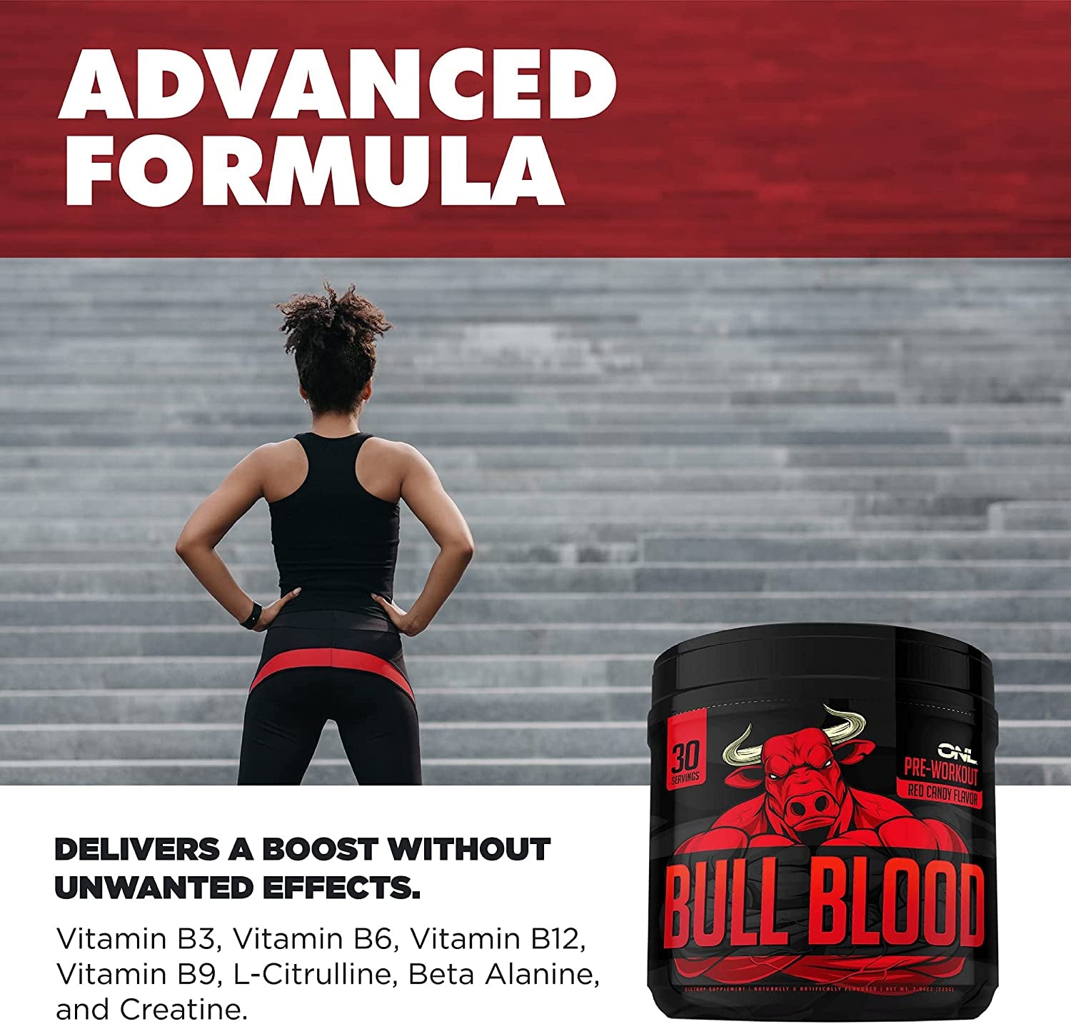 • Maximize Gym Productivity with Bull Blood Pre-Workout: Unleash your fitness through the Bull Blood Pre Workout Powder Supplement. Crafted with top-tier ingredients this pre workout for men presents an all-inclusive formula, elevating not only your physique but your overall well-being.