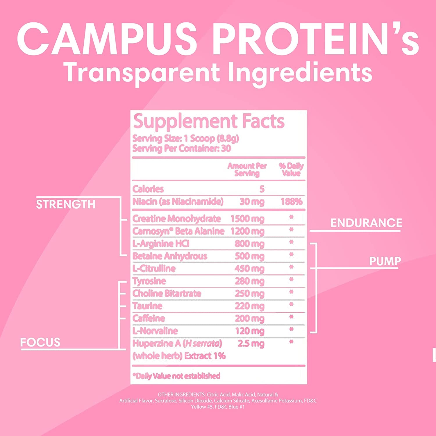Campus Protein Fuel - Pre Workout Powder for Men and Women, Sour Watermelon Wedges Flavor, Low-Calorie and Sugar-Free Pre Workout Mix with Creatine Monohydrate, Supports Energy and Focus