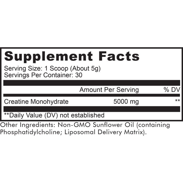 - This micronized creatine supplement utilizes liposomal delivery derived from non-GMO sunflower. This feature helps support the bioavailability of creatine.