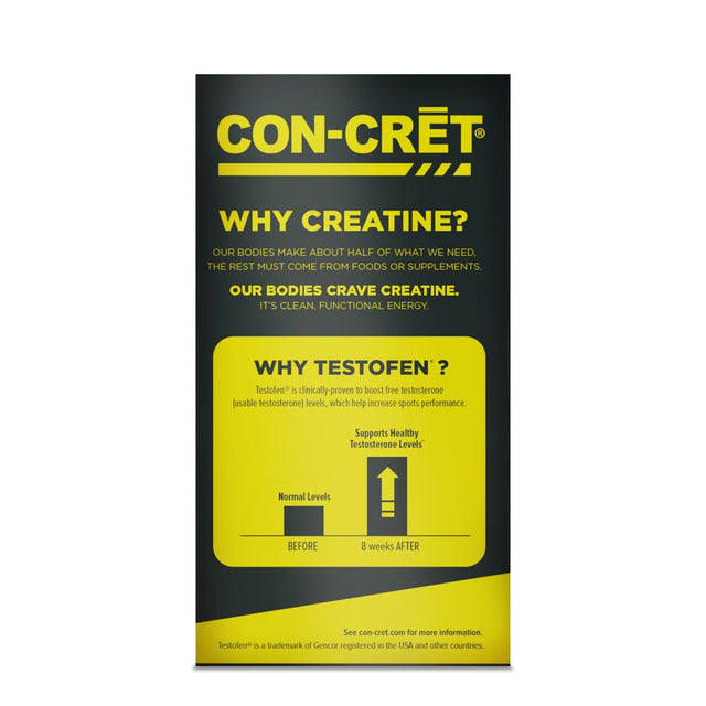 - CON-CRET® Patented Creatine HCl® now with the additional benefits of Testofen® for maximizing overall performance, strength, and vitality.