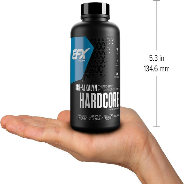 EFX Sports Kre-Alkalyn Hardcore , Thermogenic Ph Correct Creatine Monohydrate Pill Supplement , Energy & Strength Pre Workout , 60 Servings, 180 Capsules 180 Count (Pack of 1)