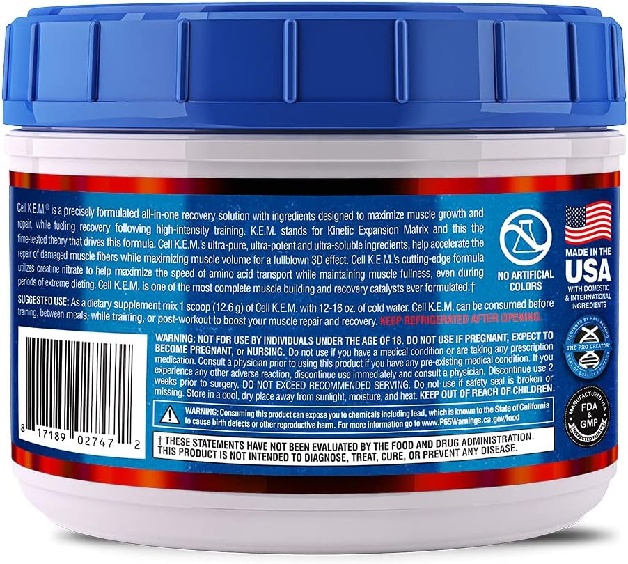• IMPROVED RECOVERY – Working hard in the gym is just one piece of the equation when it comes to maximizing your results. Not being able to recover properly following intense workouts can minimize results. CellKEM is a multi-faceted post-training creatine and amino builder that helps speed up recovery to enhance your muscle-building efforts. The quicker you can recover from training, the faster you can get back in the gym and push the boundaries.