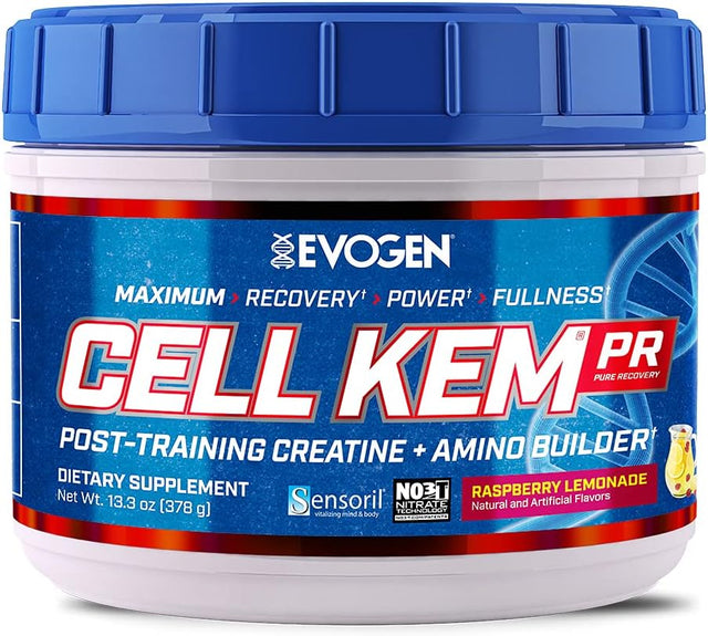 Evogen CellKEM PR Post Workout Powder, Essential Amino Acids, Creatine Nitrate, Sensoril Ashwagandha, Recovery | Raspberry Lemonade